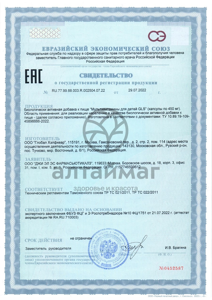 - Купите Мультивитамины для детей GLS 60 капсул в Евпатории по доступной цене 808 ₽ с доставкой на дом или заберите Ваш заказ в Евпатории из ближайшего пункта выдачи, сделав заказ на AltaiMag.ru.