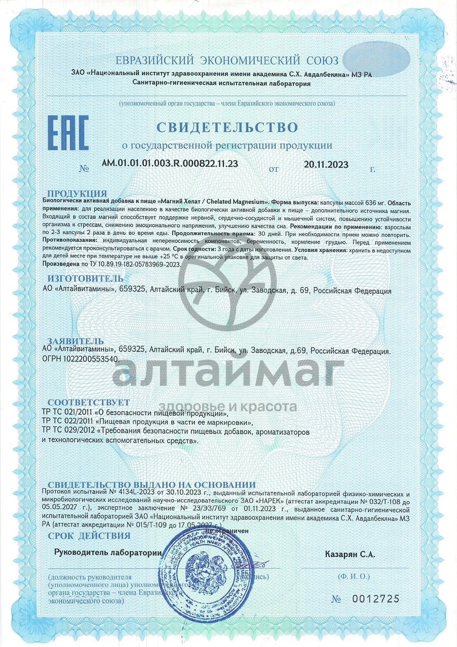 - Купите Магний Хелат Алтайвитамины 120 капсул в Евпатории по доступной цене 1 495 ₽ с доставкой на дом или заберите Ваш заказ в Евпатории из ближайшего пункта выдачи, сделав заказ на AltaiMag.ru.