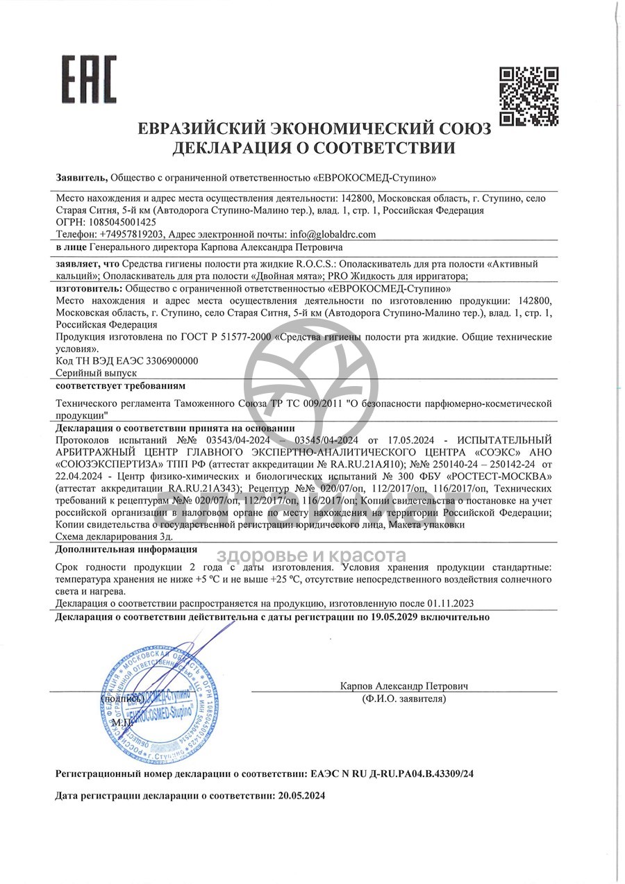 Российская компания R.O.C.S. – один из лидеров в области производства продукции для ухода за полостью рта, косметики, медицинских изделий. Компания обладает двумя современными производственными площадками в России и тремя научными лабораториями. Работники компании – это медики, биохимики, физики и инженеры, обладающий высокими учеными степенями и печатаемые в научных публикациях во многих цитируемых изданиях. Для производства продукции были разработаны уникальные технологические формулы, авторские методики производства. Основа философии марки R.O.C.S. – натуральность, эффективность, безопасность, поэтому при выборе компонентов для продукции компания отдает предпочтение растительному, минеральному сырью и природным, нейтральным для организма человека компонентам.